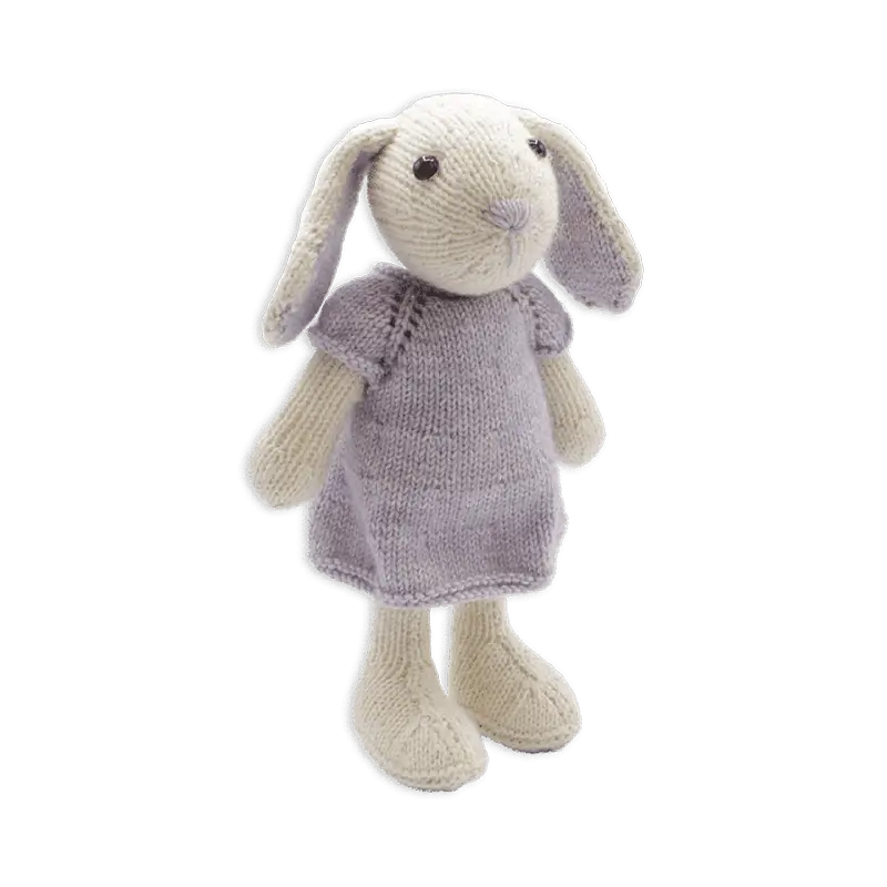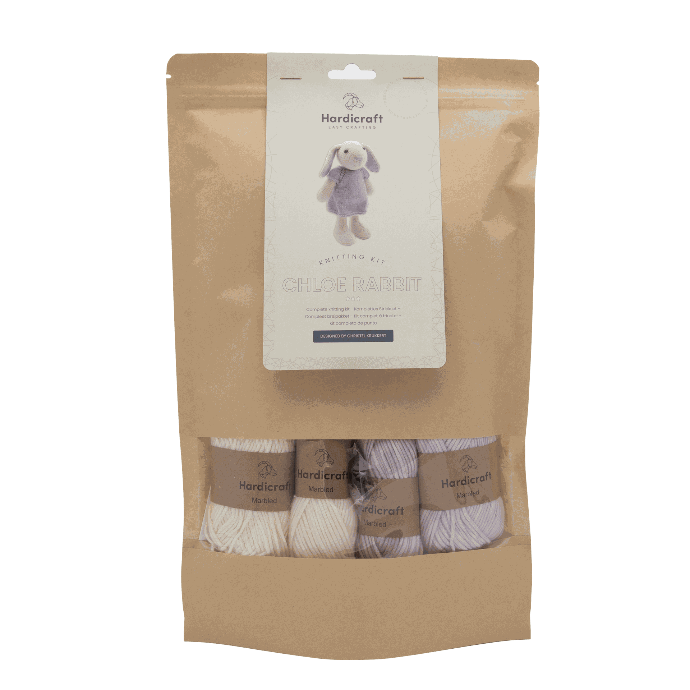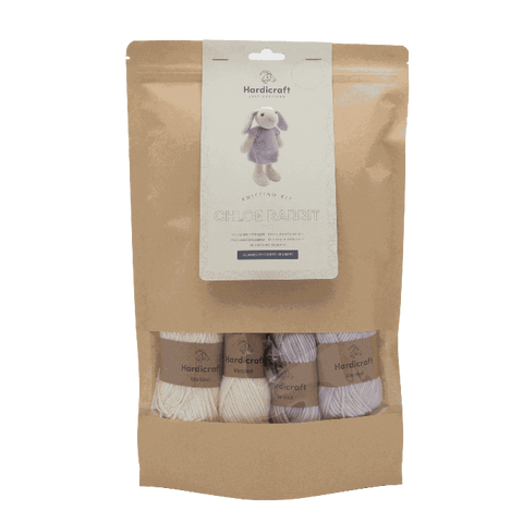 Chloe es nuestro kit de tejido más vendido y forma parte de un set de cuatro kits de tejido de animales con ropa (Freek/John/Frida). No solo es adorable, sino que también es muy suave y busca un compañero con quien acurrucarse.