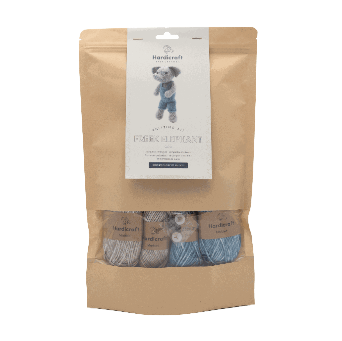 Freek, con su mono tan chulo, forma parte de un set de cuatro kits de tejido con ropa (Frida, John y Chloe). No solo es adorable, sino que también es muy suave y busca un compañero de abrazos.