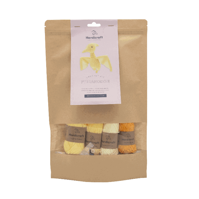 - 25g de estambre amarillo claro, 100% algodón orgánico