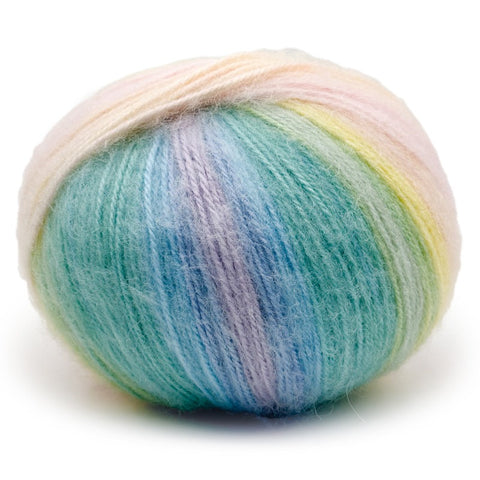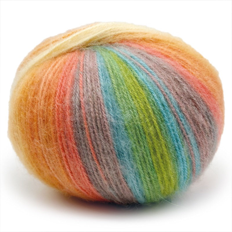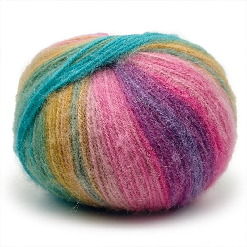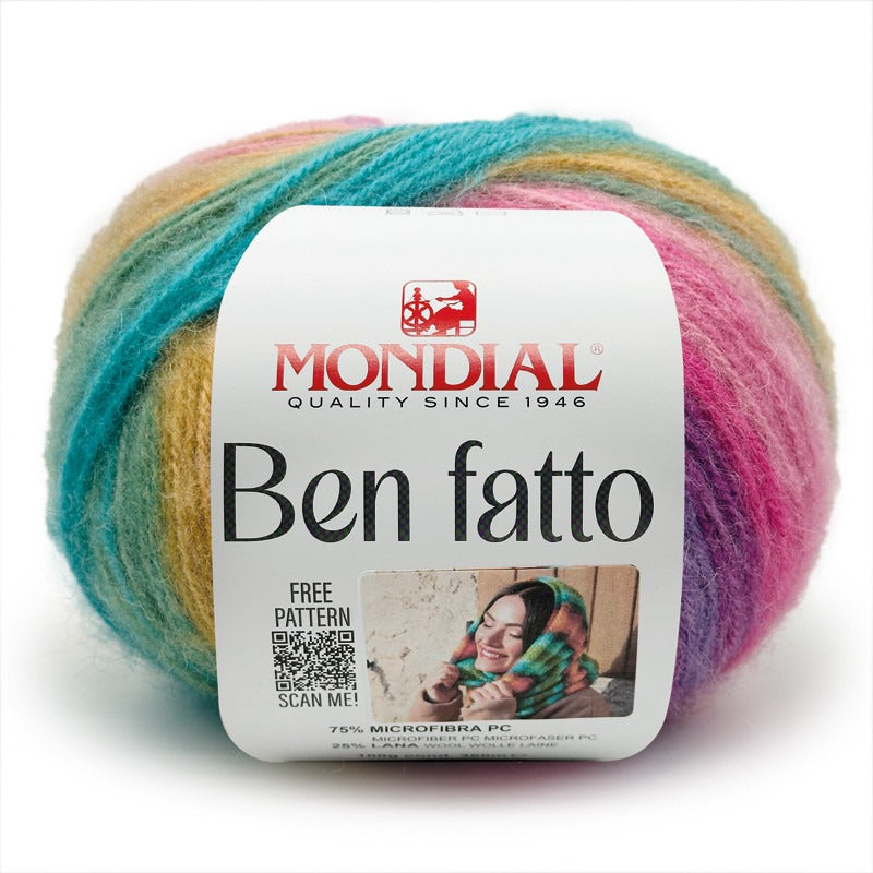 Ben Fatto es un hilo afelpado, sencillo y eficaz, estampado con brillantes tonos multicolores, que te permitirá crear prendas impactantes, incluso con tejidos sencillos.